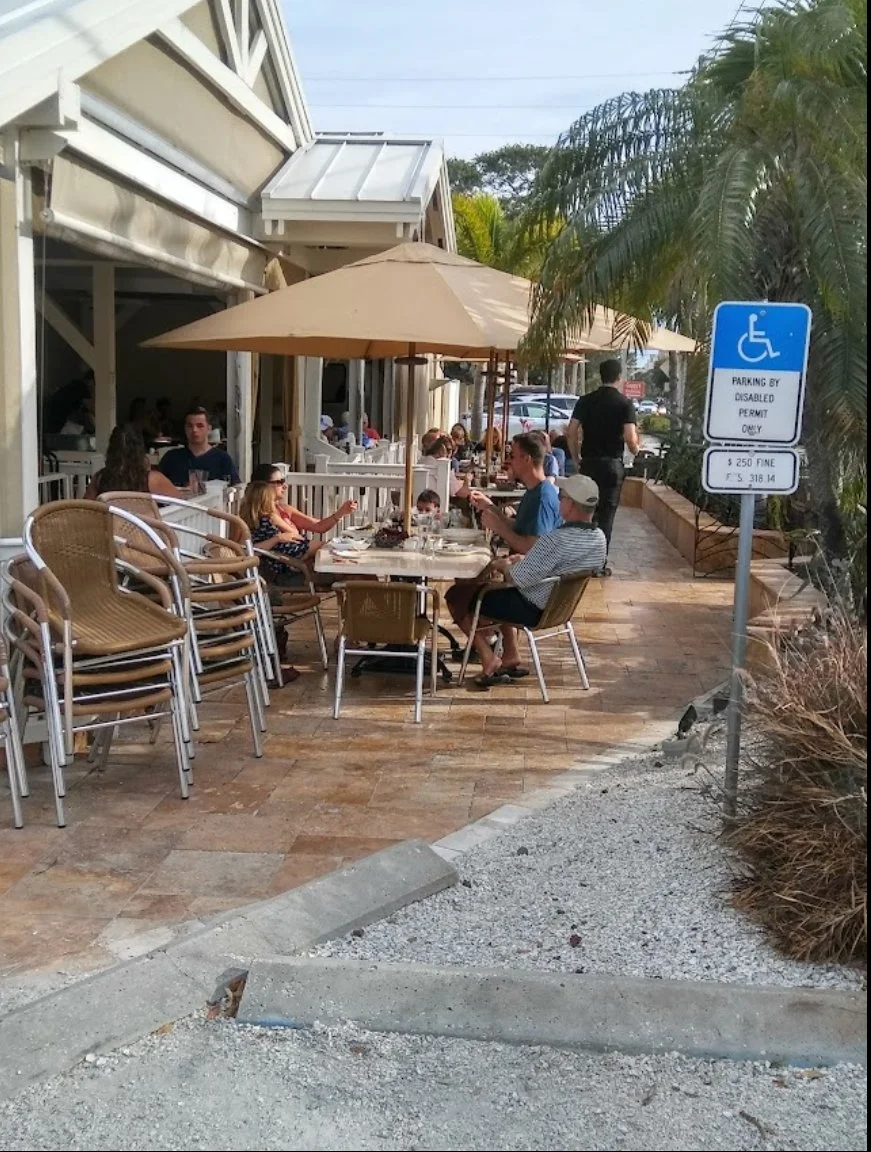 The patio vibe—umbrella shade, gentle breeze, sandy feet—makes every meal feel like a mini beach vacation .
